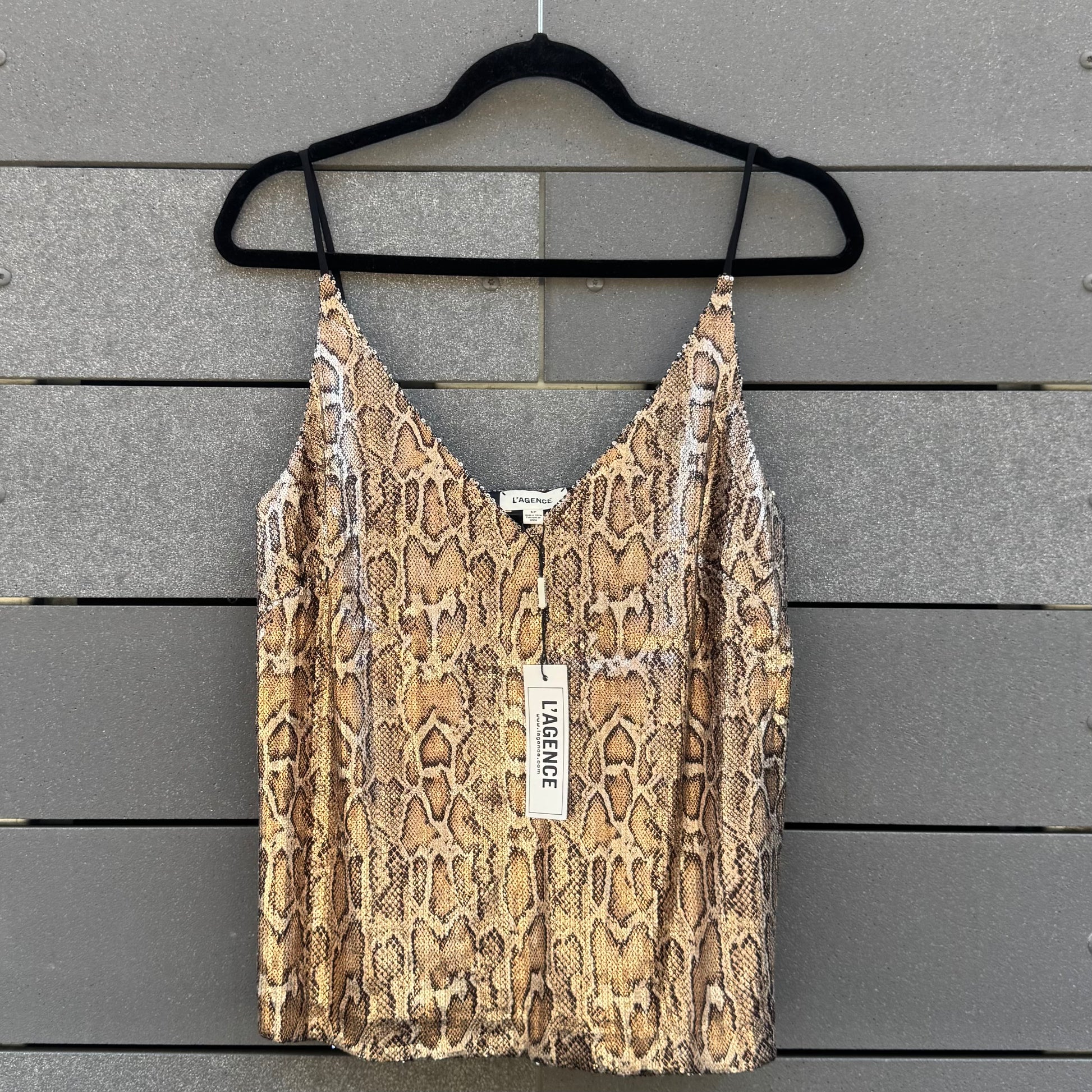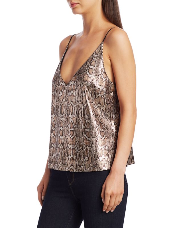 Exquisite serpentine patterning worked in sequins elevates the camisole silhouette.