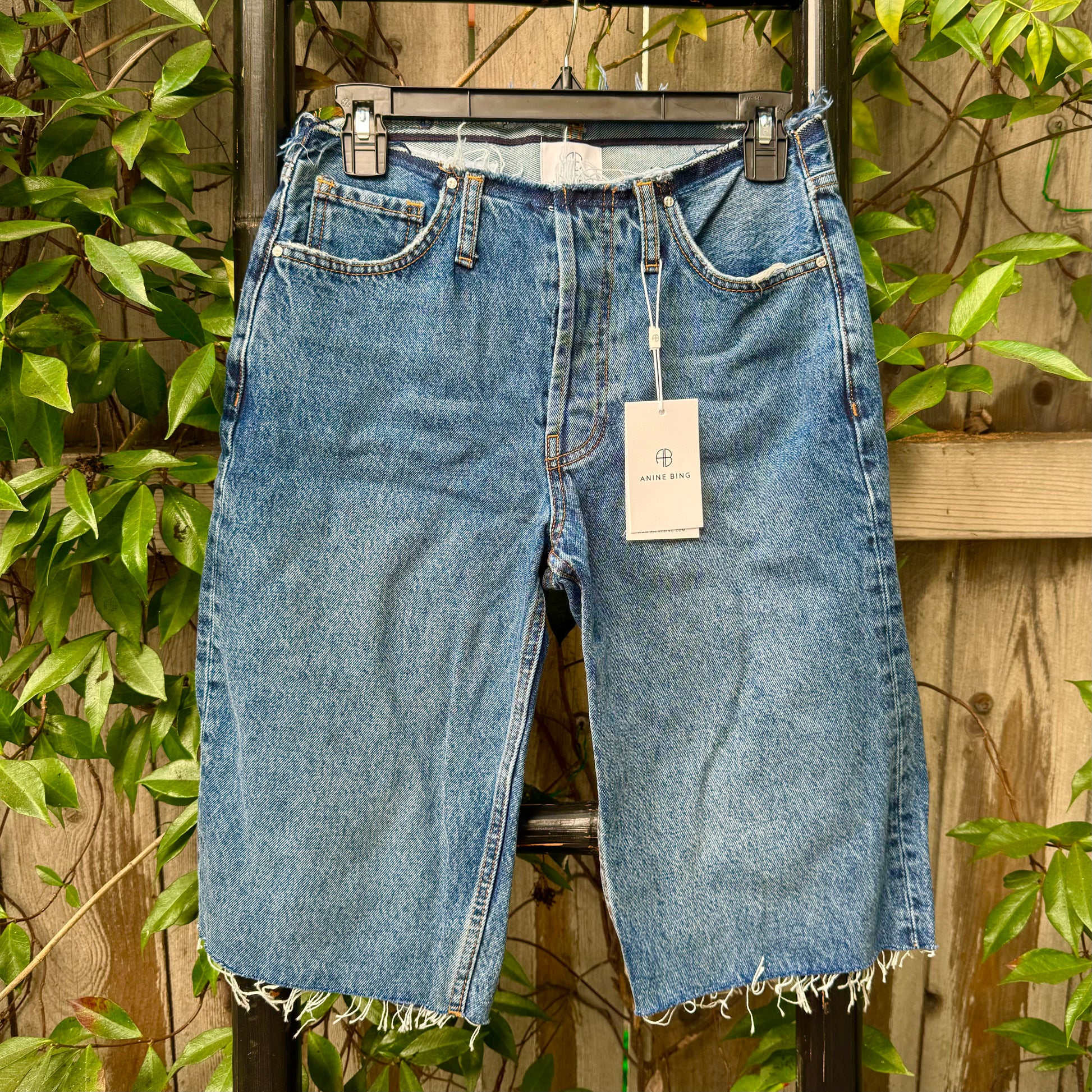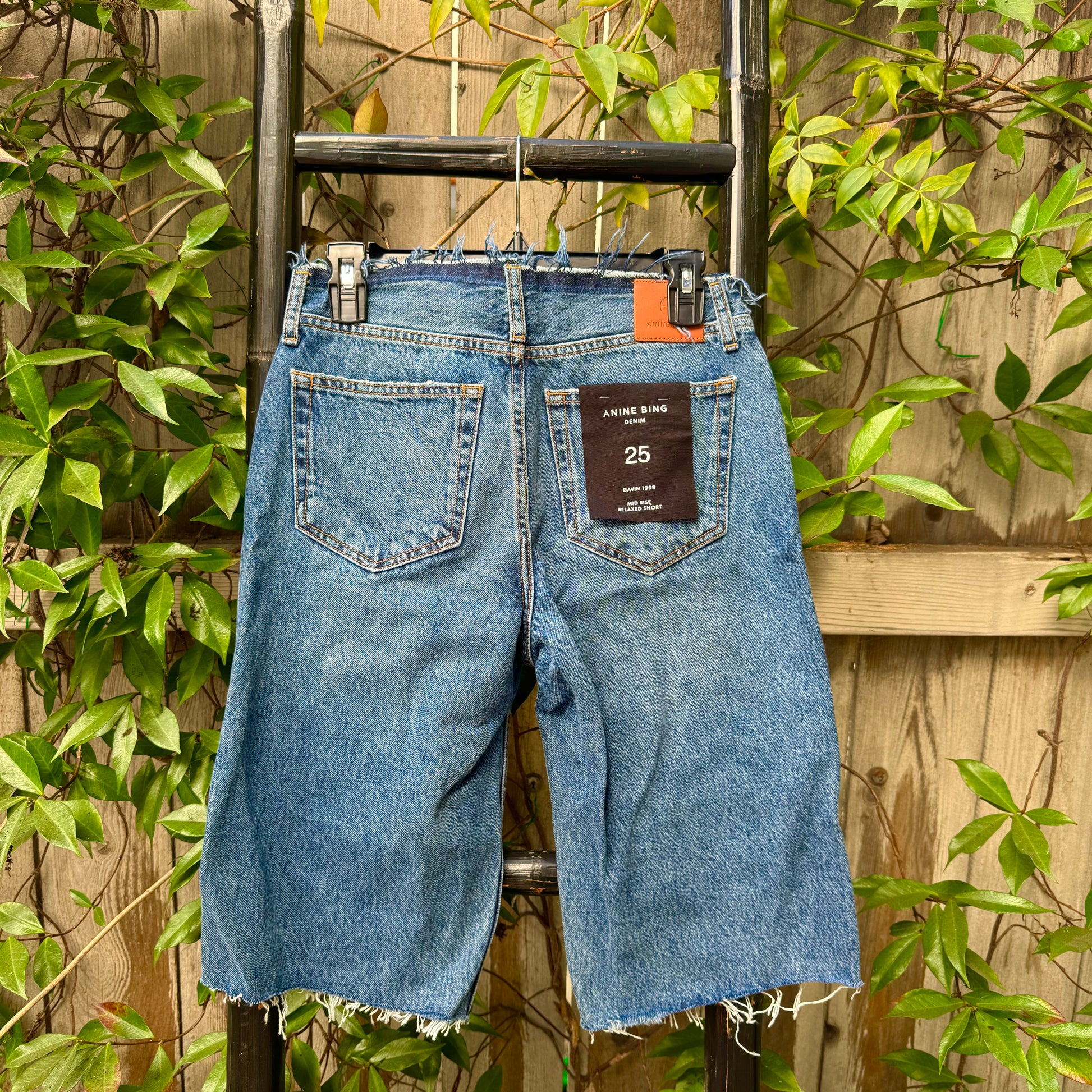 Void of a waistband, these wide-leg Gavin denim shorts are enhanced with raw trim and a classic button fly. Belt loops Button fly Five-pocket style Back leather logo patch Raw trim Machine wash