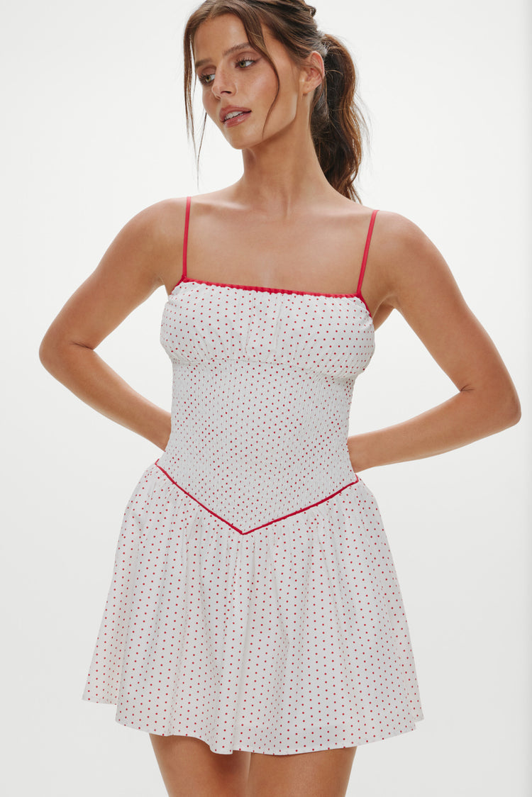 The Marley cotton mini dress is made for golden hour walks and afternoon picnics. With buttons down the front and a fitted bodice, Marley is sweet yet structured — and designed to pair with our matching Lemon Dot swim sets (https://frankiesbikinis.com/collections/lemon-dot).