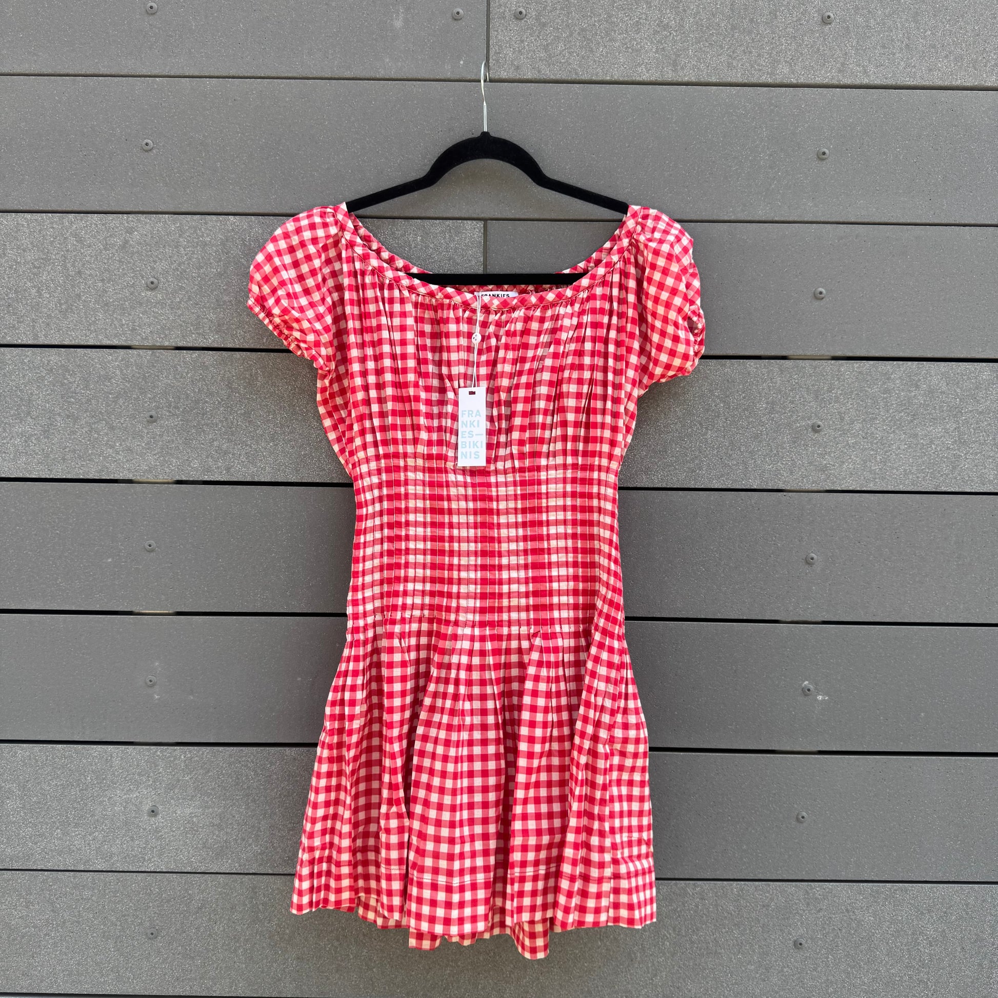 Designed in a new Cherry Gingham print, this fully pin-tucked mini dress is a playful silhouette for summer. The customizable neckline and side zippers add versatility, making the Sadie mini dress a perfect choice for any sunny outing.