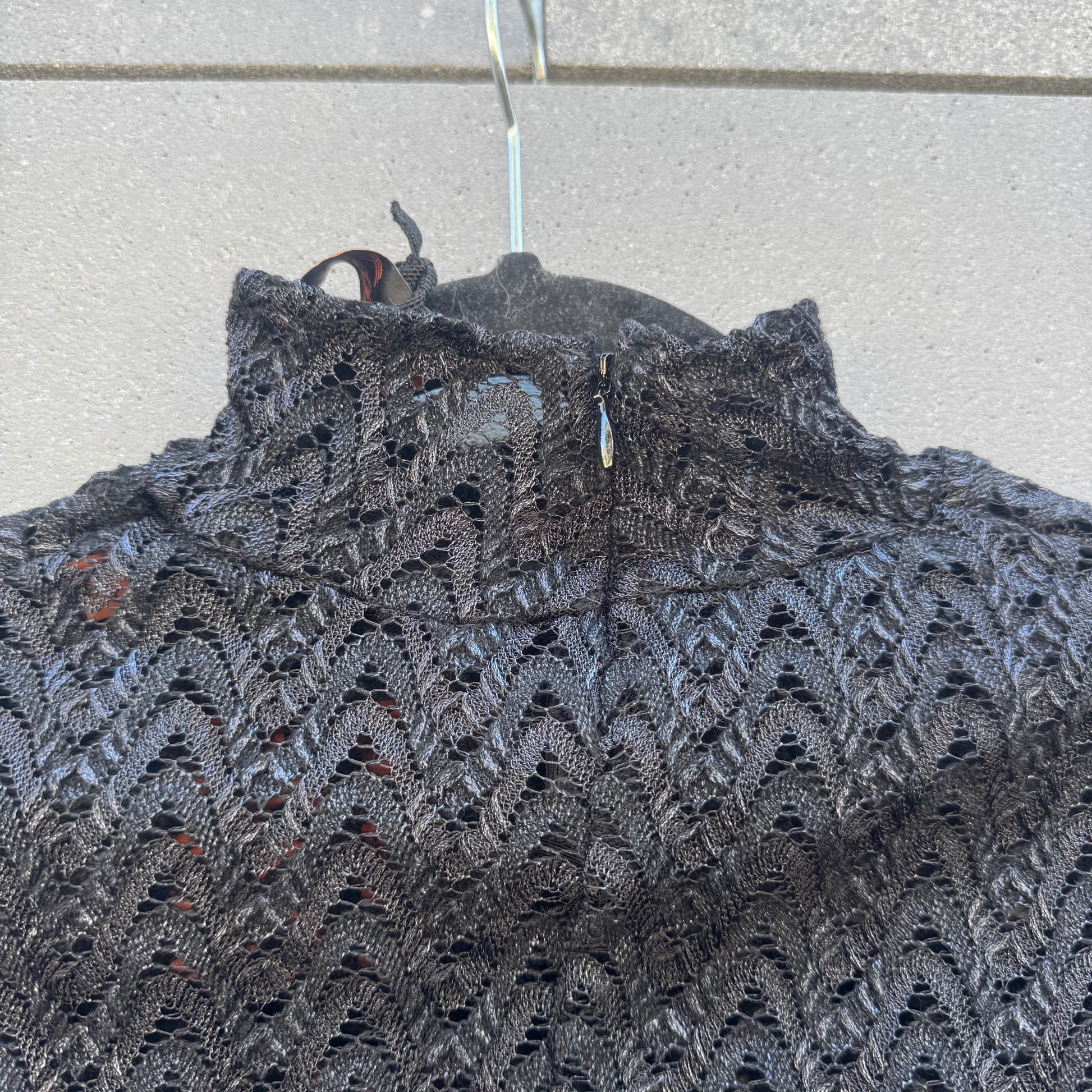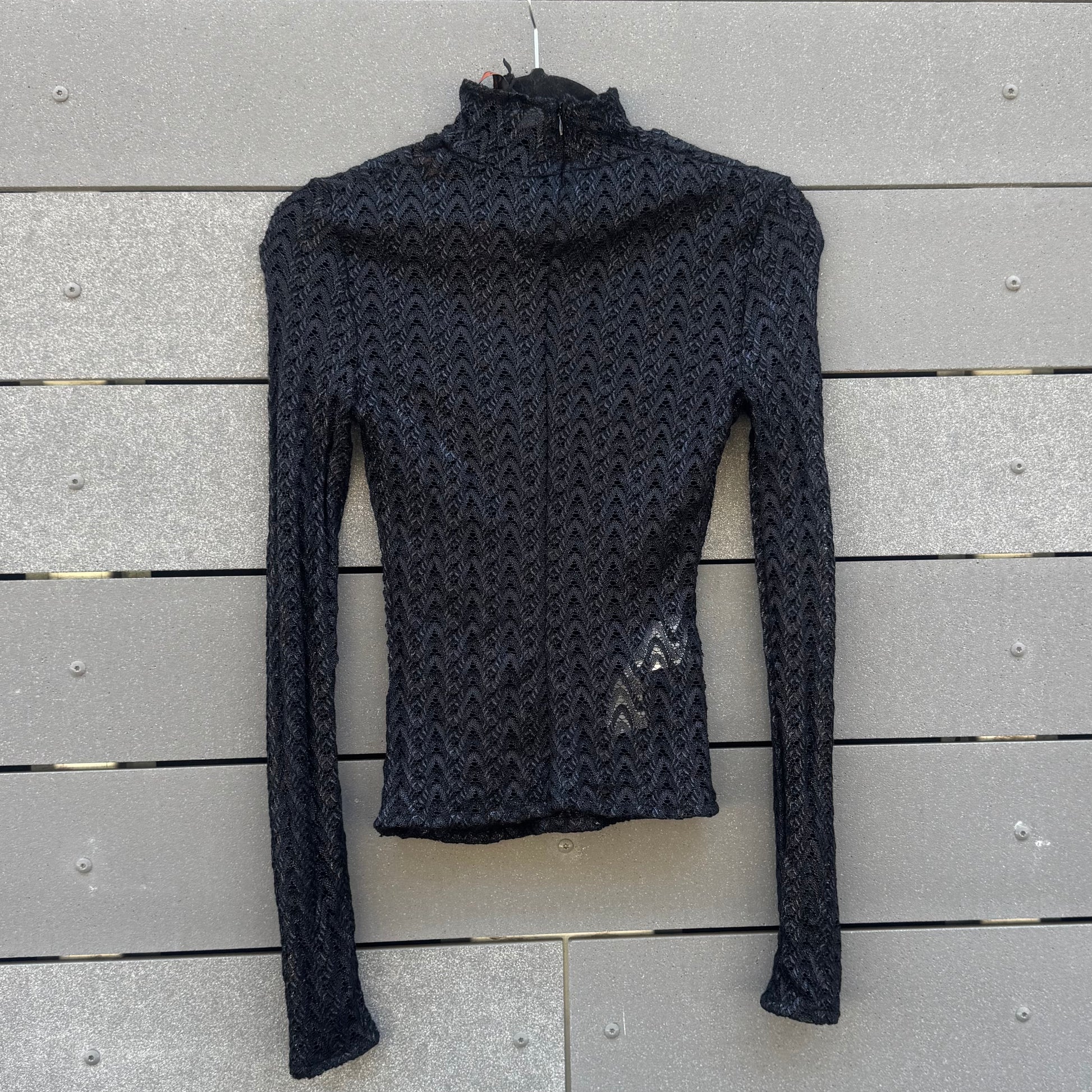 Knitted, metallic, lightweight knit, no appliqués, solid color, turtleneck, long sleeves, zipper fastening, hook fastenings